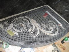 Мой вариант самопального поддона, сам делаю, не очень удачно выложил горизонтальные ряды мозаики, готовых карт не было, брал мозаику россыпью, в общем как то так…, в процессе…