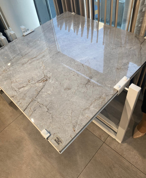 Посоветуйте, пожалуйста, для укладки одним контуром ~80 м2 (лестничная площадка 16, гостиная с камином 37 и кухня 27) тёплого водяного пола в загородном доме какой керамогранит выбрать? 1. Глянцевый под камень (90*90): парадно, но напоминает ТЦ особенно с отражающими светильниками