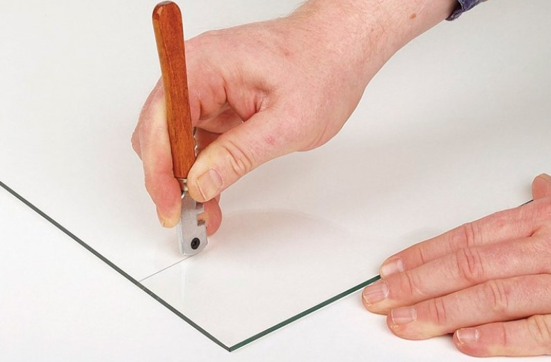 Один из самых распространенных способов резки плитки, подразумевает использование стеклореза. Для этих целей лучше запастись алмазным или масляным инструментом, но если их под рукой не оказалось, подойдет и обычный роликовый. Еще понадобится ровный стол, металлический угольник, маркер, кусок наждачной бумаги с зернистостью 60-80 единиц и обычный гвоздь длиной 70-100 мм.