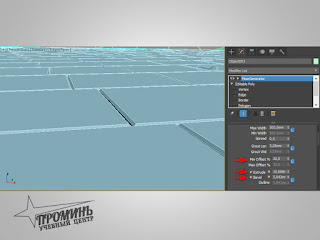 Следующий шаг, не снимая выделения с центральных полигонов, применяем модификатор Exrude. Этим мы создадим высоту плитки, примерно поставим значение 0.7см