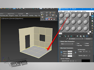 Рис. 6. Назначаем простой серый материал пола через Material Editor.