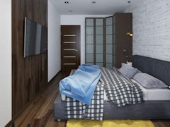 Классическое решение для пола — также удачная находка для стен. Штучный паркет — это небольшие планки из ценных пород дерева, его редко используют как тотальную отделку, чаще для декора акцентной стены за изголовьем кровати или в ТВ-зоне.