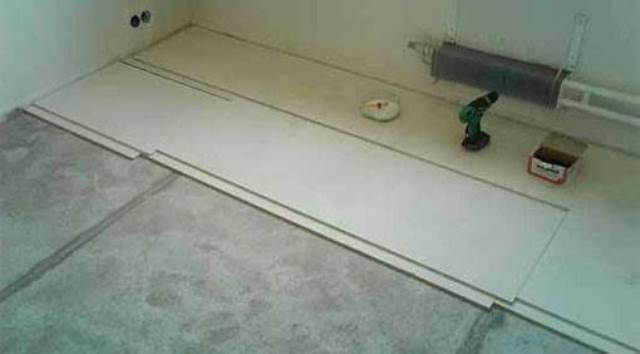 - Укладка ГВЛ на деревянный пол под плитку