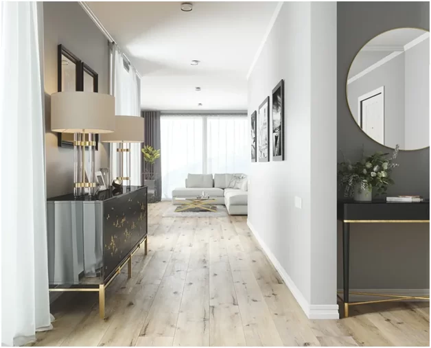 Кварцевый ламинат можно укладывать без порогов на площадях до 200 м2 — просто подарок для перфекционистов.