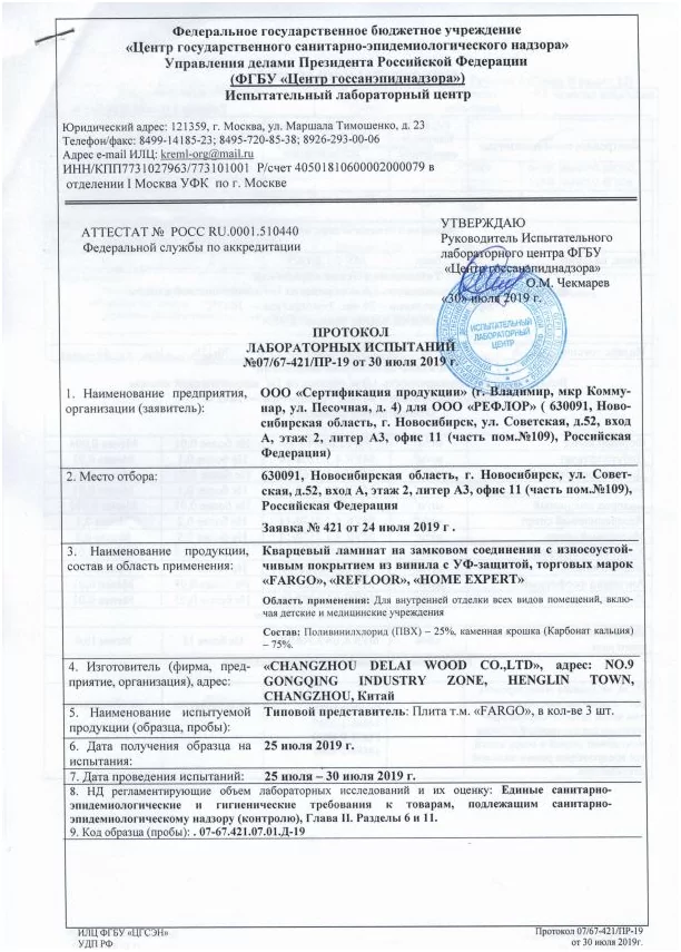 SPC плитка участвовала в лабораторных испытаниях (протокол от 24.10.2018) в сравнении с LVT продуктами. Исследования подтвердили преимущества ламината SPC перед плиткой ПВХ, а именно: