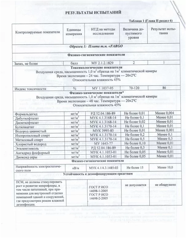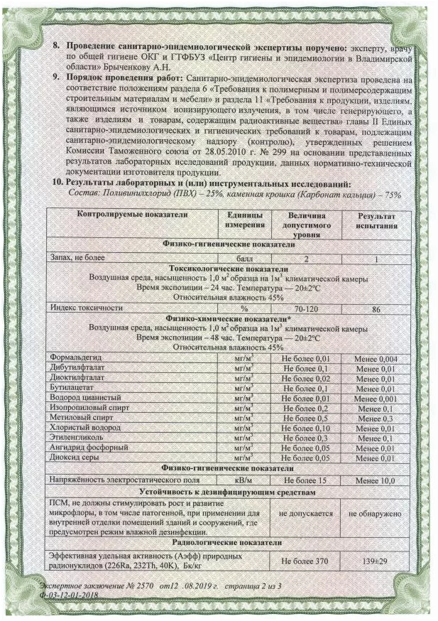 8. Наличие санитарно-гигиенических сертификатов.