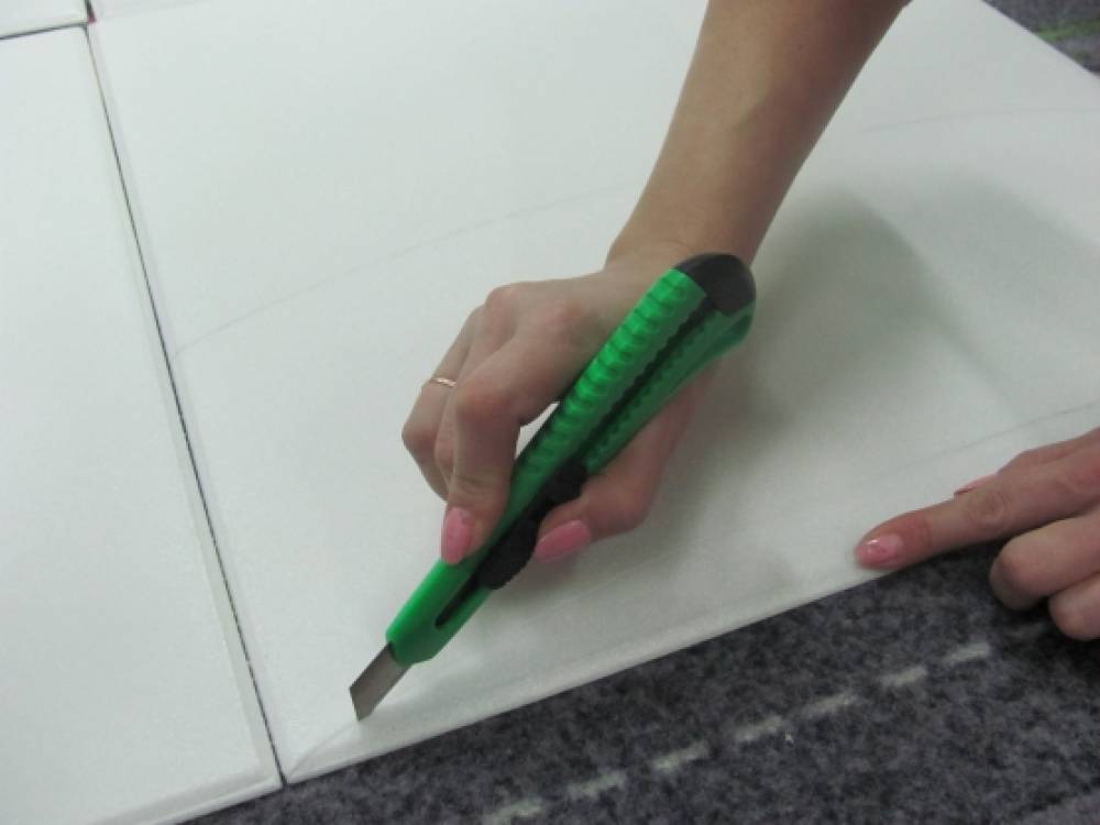 - вырезаем нужные детали из плитки с помощью канцелярского ножа