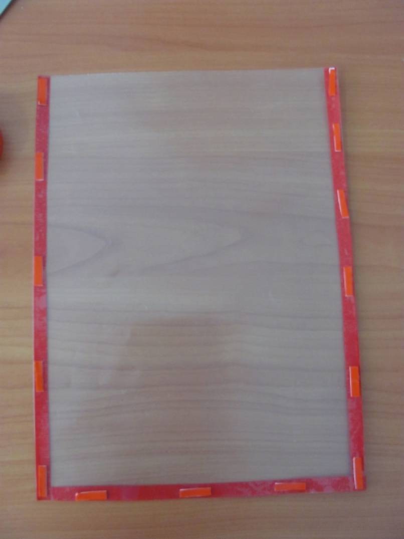С помощью самоклеящейся бумаги, делаем рамку. С обратной стороны наклеиваем двухсторонний скотч.